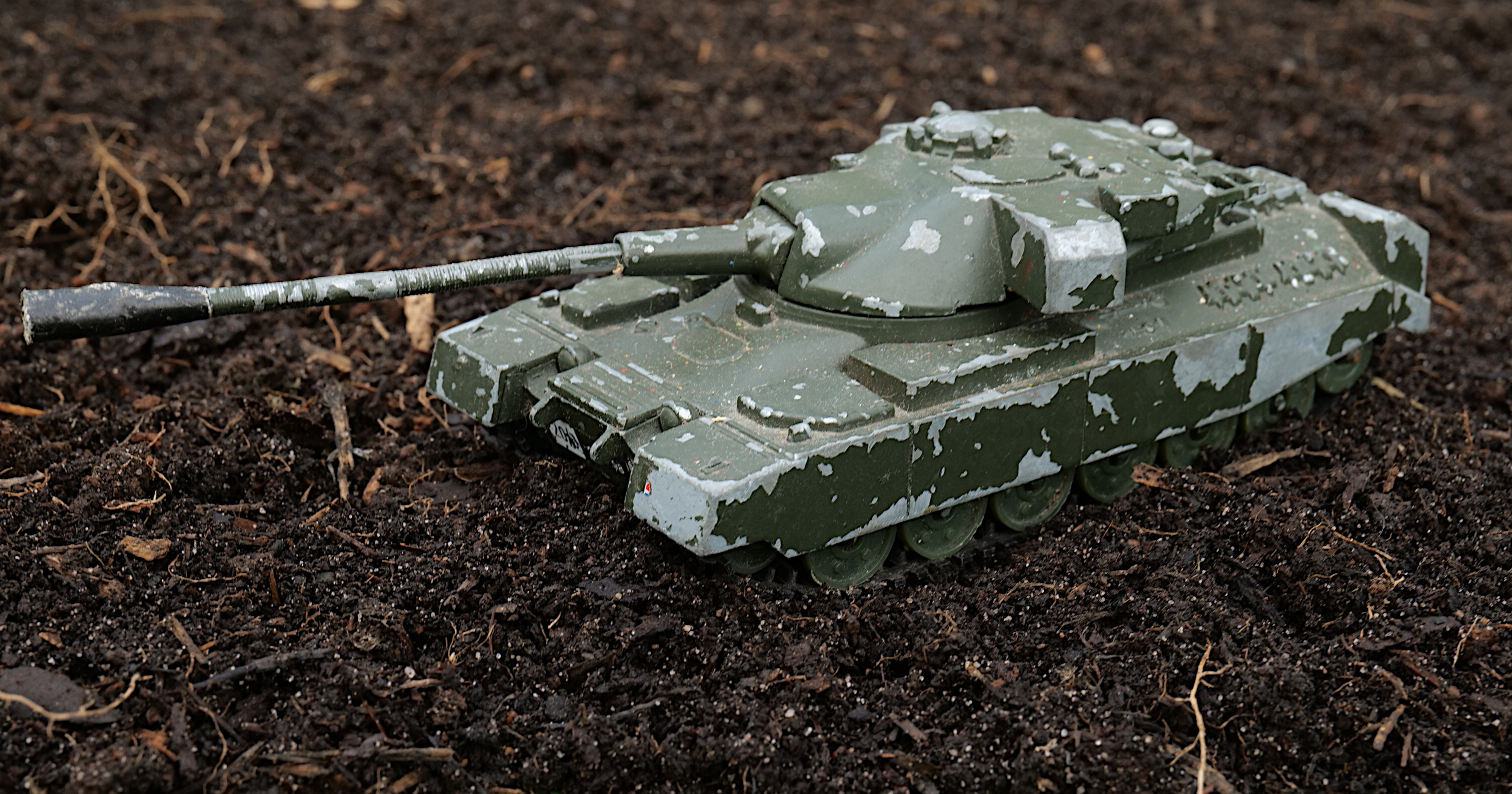Remarks: This lovely model does not have its original box.   It is in 'play-worn' condition with age-related patina.   It is great to see this model has all its wheels and tracks. A lovely model for military collectors..